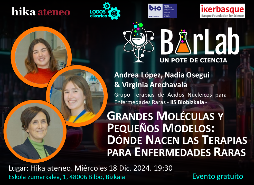 Ponente: Andrea López, Nadia Osegui y Virginia Arechavala (Grupo Terapias de Ácidos Nucleicos para Enfermedades Raras, IIS Biobizkaia).