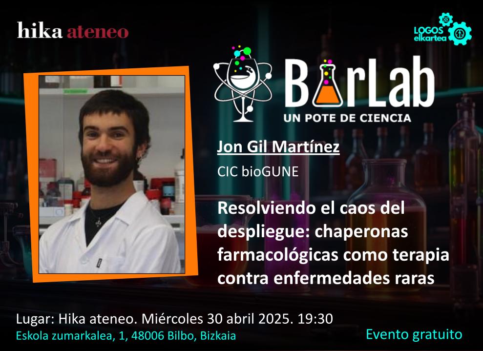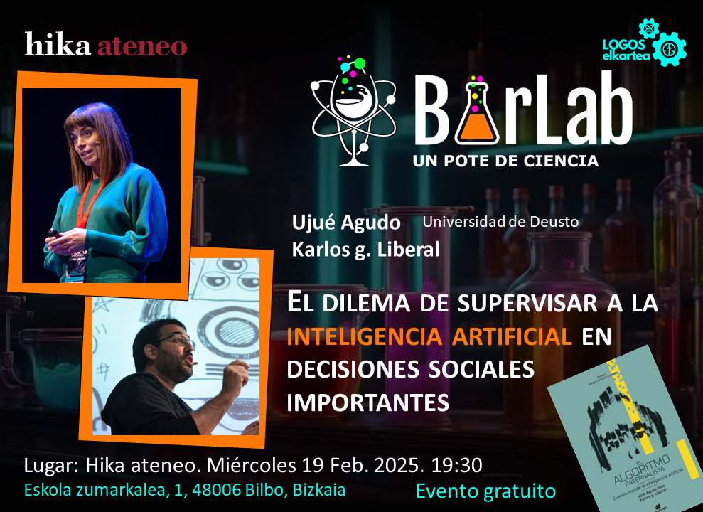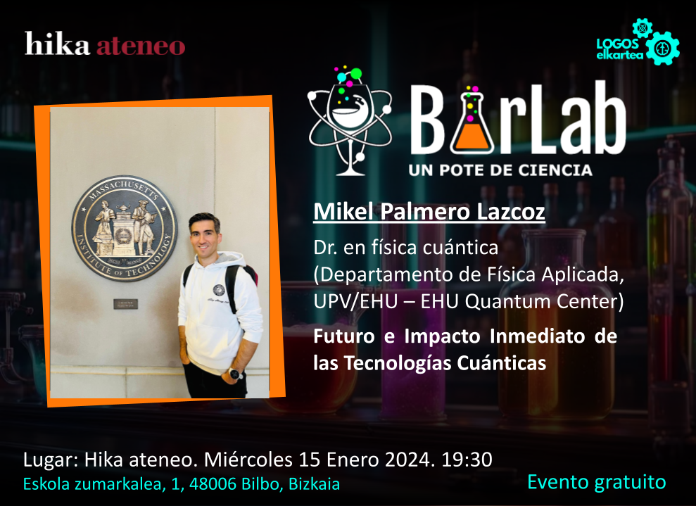 BarLab está organizado por Hika Ateneo, la asociación LOGOS elkartea y Oskar González y Sofía Martínez, profesores de la UPV/EHU. Se llevará a cabo un miércoles de cada mes y contará con la participación de personas con destacada trayectoria científica que compartirán su trabajo con el público asistente. Este podrá sumergirse en el mundo de la ciencia mientras disfruta de la relajada atmósfera de un bar y aprovechar la oportunidad para compartir sus inquietudes y encontrar respuesta a sus preguntas.
