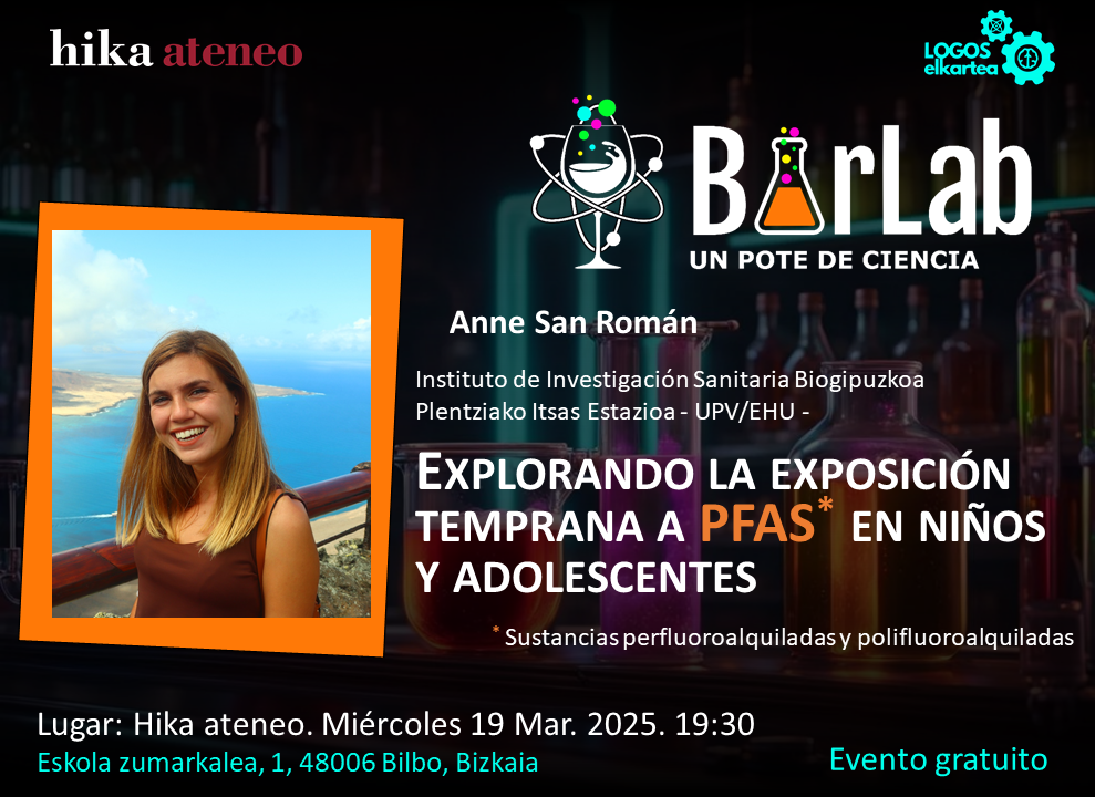 Resumen de la charla: Los PFAS (sustancias per- y polifluoroalquiladas) son compuestos sintéticos que han revolucionado la industria por su resistencia al calor, el agua y la grasa. Los encontramos en utensilios de cocina, ropa impermeable e incluso en espumas antiincendios. Sin embargo, su durabilidad tiene un lado oscuro: no se degradan fácilmente y pueden acumularse en nuestro entorno y en el organismo, generando preocupación por sus posibles efectos en la salud. Los niños son especialmente vulnerables a estas sustancias, ya que la exposición temprana se ha relacionado con alteraciones hormonales y problemas en el desarrollo. En el Proyecto INMA (Infancia y Medio Ambiente) estudiamos el impacto de los PFAS en la infancia, analizando su presencia en plasma y agua potable en la cohorte INMA Gipuzkoa.